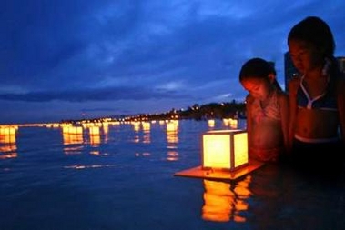Lantern offerings, lantern offerings on the water, lantern drifting, lantern floating, lantern festival